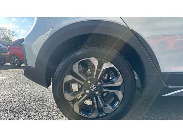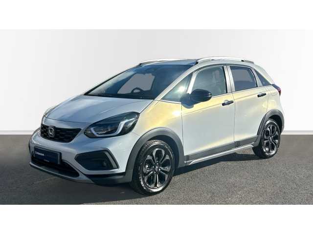 The 2024 Honda Jazz Hybrid i-MMD Crosstar Advance. As a Honda manufacturer-approved vehicle, this Crosstar Advance trim boasts a 1.5L Petrol Hybrid Engine and meets Euro 6 emission standards. Enjoy the convenience of Smart Entry and Start, including Keyless Entry, along with Bluetooth Hands Free Telephone connectivity. The integrated Honda CONNECT with Navigation, featuring Android Auto and Apple CarPlay, keeps you connected on the go. Automatic Headlights ensure optimal visibility, while front and rear parking sensors simplify maneuvering in tight spots.
